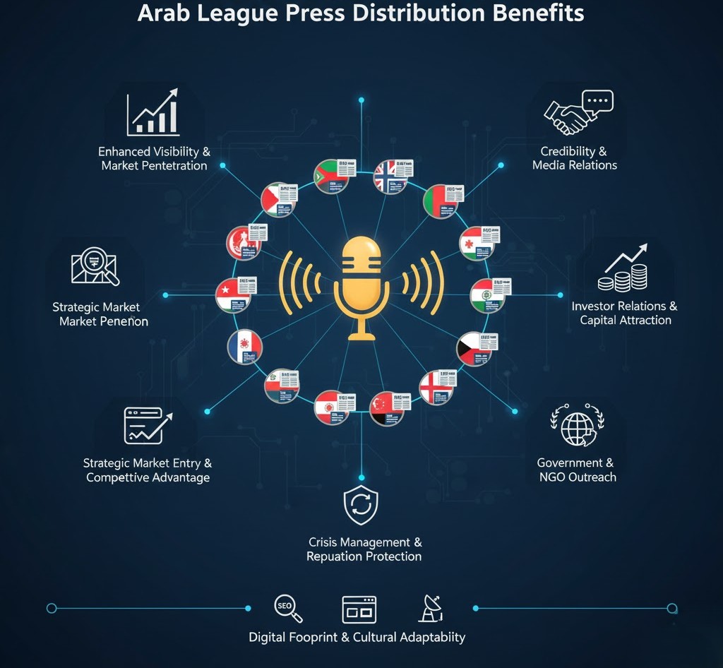بالنسبة للجهات التي تستهدف دخول أسواق جديدة داخل جامعة الدول العربية، يعمل توزيع البيانات الصحفية كخطوة تمهيدية أساسية قبل الدخول الفعلي إلى السوق، حيث يتيح: