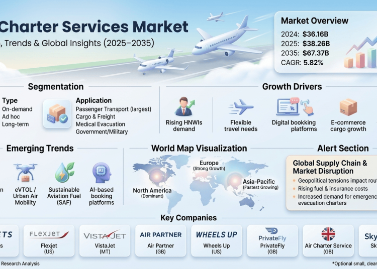 The global Air Charter Services Market was valued at USD 36.16 billion in 2024 and is projected to reach USD 38.26 billion in 2025, expanding further to USD 67.37 billion by 2035, at a robust Compound Annual Growth Rate (CAGR) of 5.82% during the forecast period from 2025 to 2035. This impressive growth trajectory reflects the surging global appetite for flexible, on-demand aviation solutions catering to business executives, leisure travelers, cargo operators, and humanitarian organizations worldwide. As commercial airlines continue to face capacity constraints and scheduling rigidity, air charter services have emerged as a premium yet increasingly accessible alternative, offering unparalleled convenience, time efficiency, and customized travel experiences tailored to the unique needs of each client.