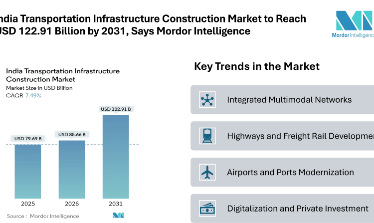 India Transportation Infrastructure Construction Market to Reach USD 122.91 Billion by 2031, Says Mordor Intelligence