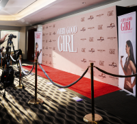 The producers of ‘A Very Good Girl’ chose none other than Step and Repeat LA to create an impressive 8’H x 20’W Media Wall, which featured a large 3D logo of the film’s title placed directly in the middle of the wall, onto a stretched matte-fabric print. The fabric print featured a traditional pattern of studio logos that were printed using eco-friendly, water-based ink on a state-of-the-art HP Latex Printer.