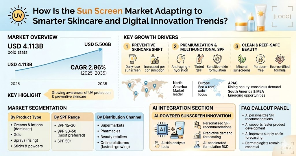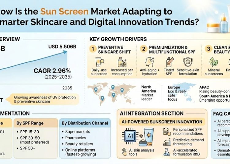 The Sun Screen Market has witnessed significant growth in recent years as consumers become increasingly aware of the importance of protecting their skin from harmful ultraviolet (UV) radiation. Sunscreens, once considered a seasonal cosmetic product, are now an essential part of daily skincare routines across the globe. According to industry projections, the Sun Screen Market is expected to grow steadily over the next decade due to rising awareness about skin cancer prevention, increasing outdoor activities, and the growing influence of skincare trends.