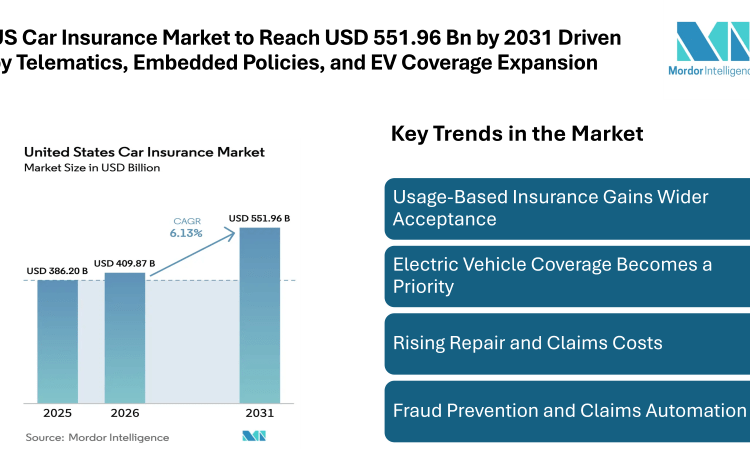 According to Mordor Intelligence, the United States car insurance market was valued at USD 386.2 billion in 2025 and is estimated to grow from USD 409.87 billion in 2026 to USD 551.96 billion by 2031, growing at a CAGR of 6.13% during 2026–2031. Strong premium momentum has followed significant rate adjustments in recent years, alongside stricter liability requirements in several states that expanded the insurable population. At the same time, digital purchasing habits among younger drivers, usage-based policies, and coverage tailored for electric and semi-autonomous vehicles are sustaining long-term demand across the United States car insurance industry.